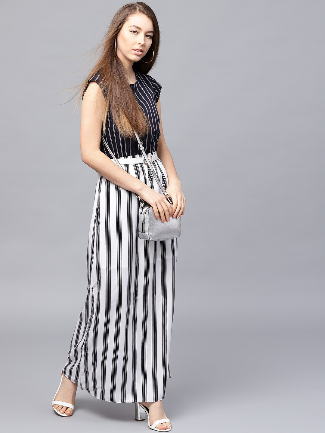 Buy Athena Women Black White Striped Maxi Dress Online