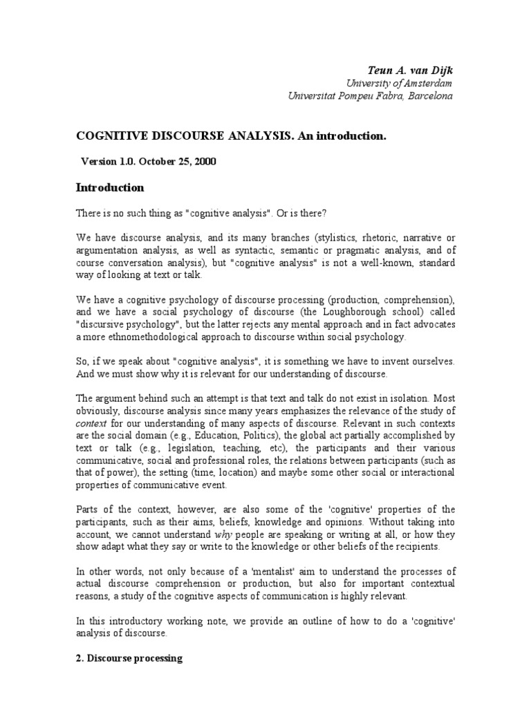 Cognitive Discourse Analysis Teun A Van Dijk Doc