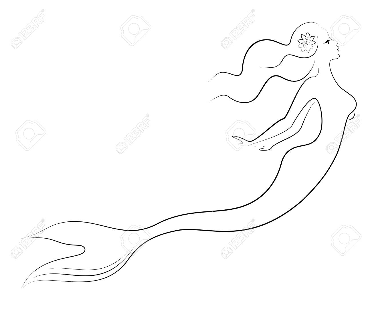 Light Haired Mermaid Graphic Sketch Art With Text Mermaid With Long