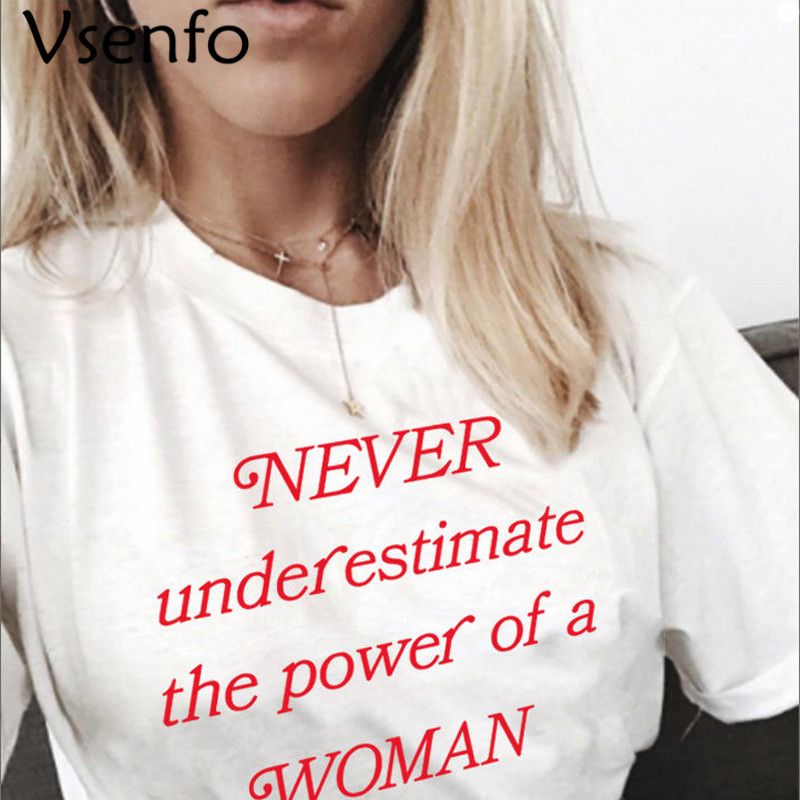 Vsenfo Girl Power T Shirt Women Casual Never Underestimate The Power